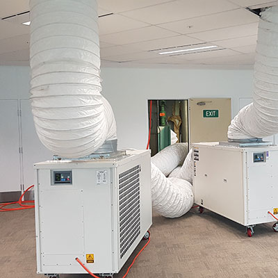 After a site inspection with the mechanical service team, it was decided that a combination of 20kW high capacity spot coolers and 4.9kW portable spot coolers would offer the best solution considering the client’s requirements and site restrictions preventing larger equipment.